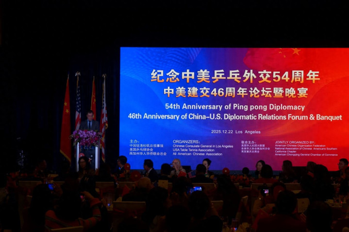 与此同时,今年洛杉矶的一场晚宴揭示了中美关系的另一面,数百名中美政商界及体育界人士齐聚一堂,纪念“乒乓外交”54周年,中国驻洛杉矶总领事郭少春发表讲话,希望中美关系中的“明灯”继续照亮前路。